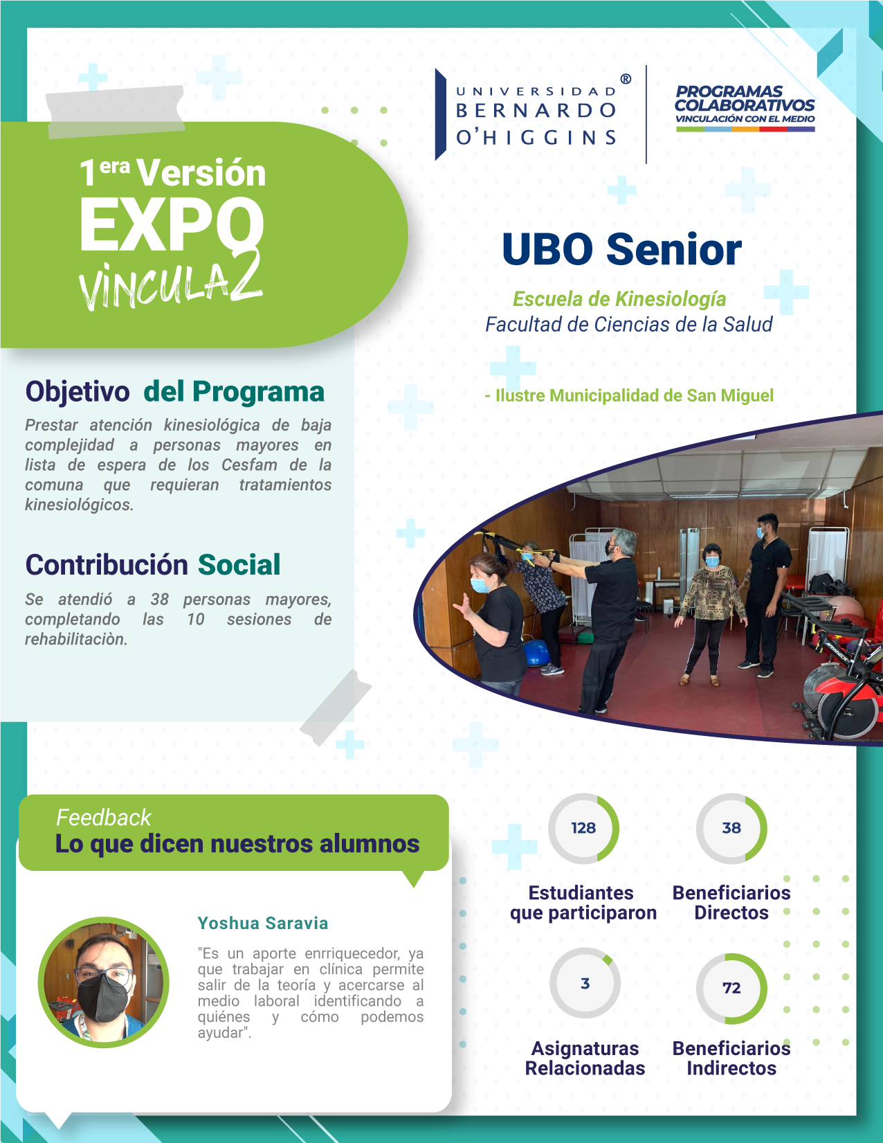 24May24 mayo, 2022 Programa Colaborativo – Escuela de Kinesiología «UBO Senior» VCM2022-05-24T17:17:43+00:00 Noticias Prestar atención kinesiológica de baja complejidad a personas mayores en lista de espera de los Cesfam de la comuna, que requieran tratamientos kinesiológicos. Share this post Facebook Twitter LinkedIn Google + Email WhatsApp